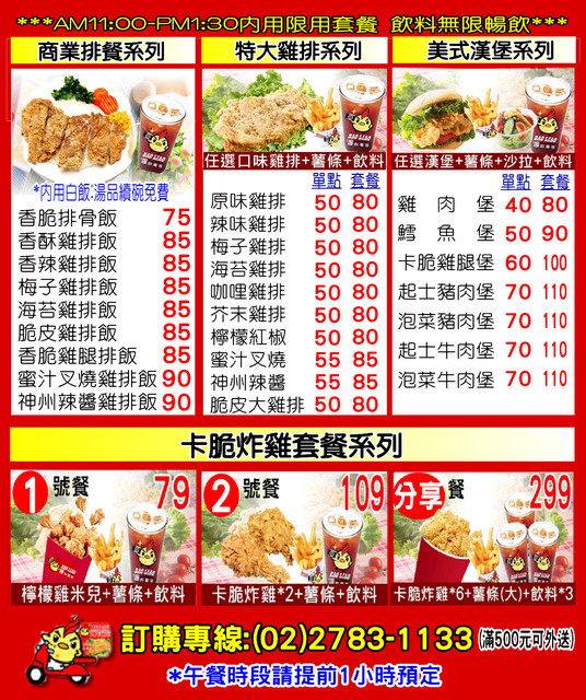 南港 便當外送 雞排外送 午餐外送 下午茶外送爆料雞排 南港園區店 中午就開始營業,除了多種口味雞排,原味雞排 辣味雞排 梅子雞排 海苔雞排 咖哩雞排...等等外,還提供 雞排飯 脆皮雞排飯 脆皮雞腿飯 排骨飯...等便當外送服務,11:30分前可預約訂購便當,南港地區滿500元可便當外送,包括 附近南港軟體園區,南港展覽館,南港運動中心,中央研究院...等,下午茶時間 南港 下午茶外送 雞排外送 飲料茶飲外送,其他南港附近地區 如:東湖外送 內湖外送 汐止外送 松山外送,雞排外送 便當外送 下午茶外送 金額請來電(02)27831133詢問,內用餐點 飯類餐點 白飯,飲料,湯都無限取用